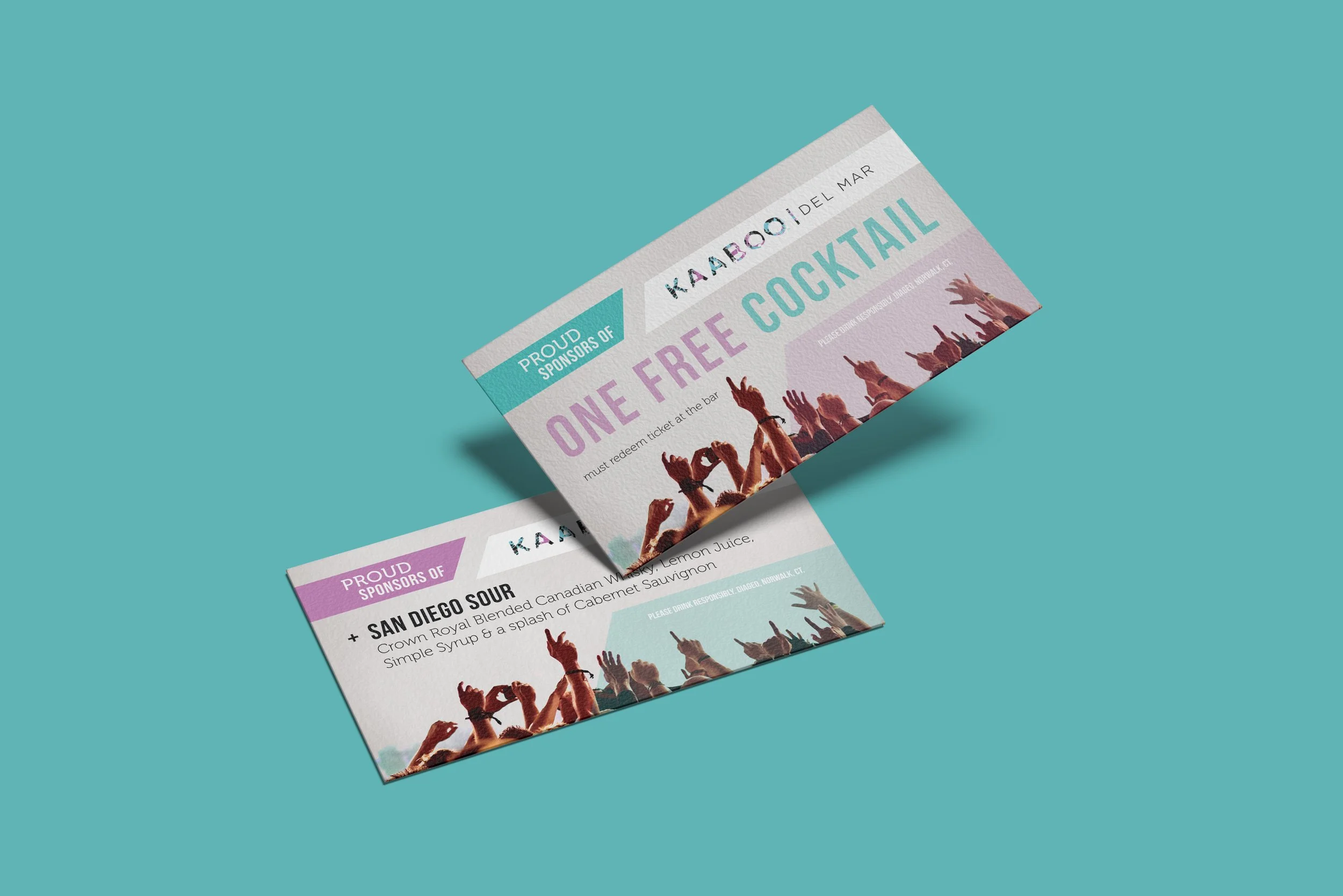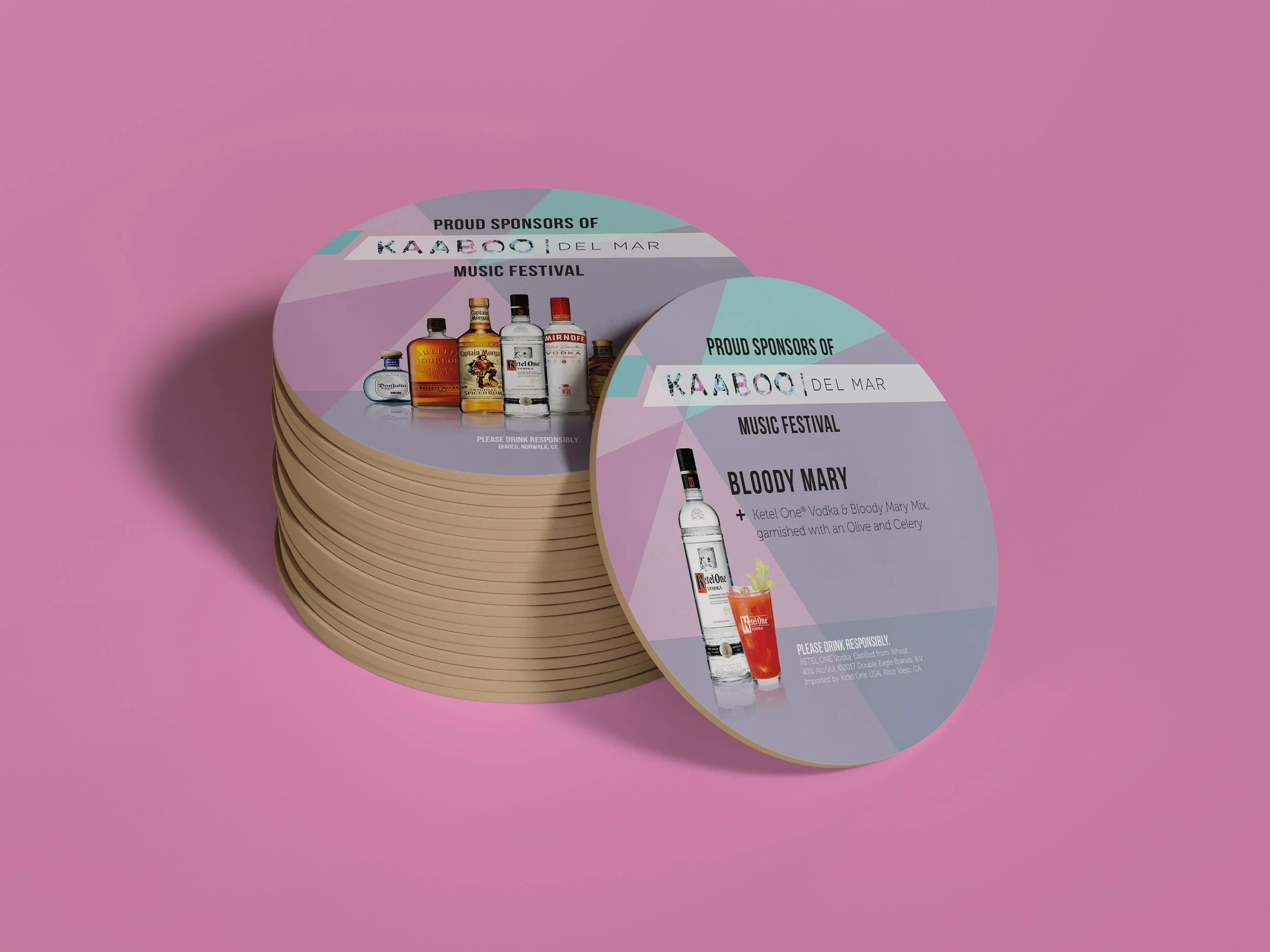 I teamed up with Diageo to produce on and off-premise elements for the 2017 festival that not only reflected KAABOO’s style, but also featured Diageo’s sponsored brands. POS produced included menus, posters & case cards and hotel door hangers.